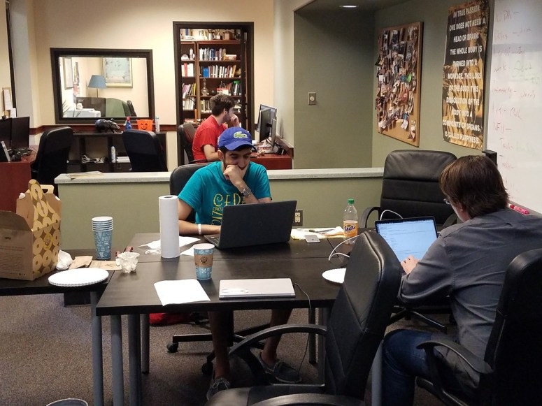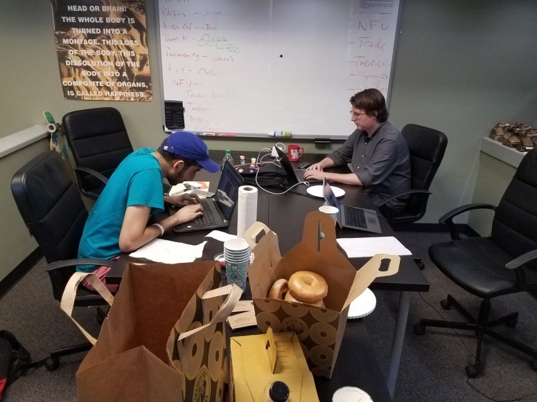 Why was there a random tomato plant abandoned in a UTD trash can?! In any case, we’re rescuing it from the grim environs of Dallas and bringing it back to a loving forever home in Houston. Until then, it’s helping Coach Garner judge debate while the rest of the team competes at American Debate Association nationals.